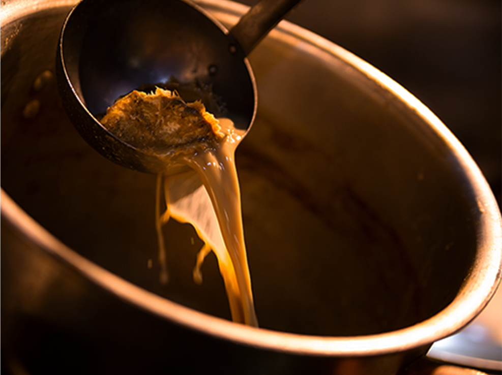 三十種類の厳選した食材から抽出された旨みと、こだわりの製法で仕上げた鶏油が織りなす香り高い人気の味を濃縮スープで忠実に再現しました。納得がいくまで何度も試作を重ね完成したスープは、まるでお店で作ったような深みとコクを味わえます。